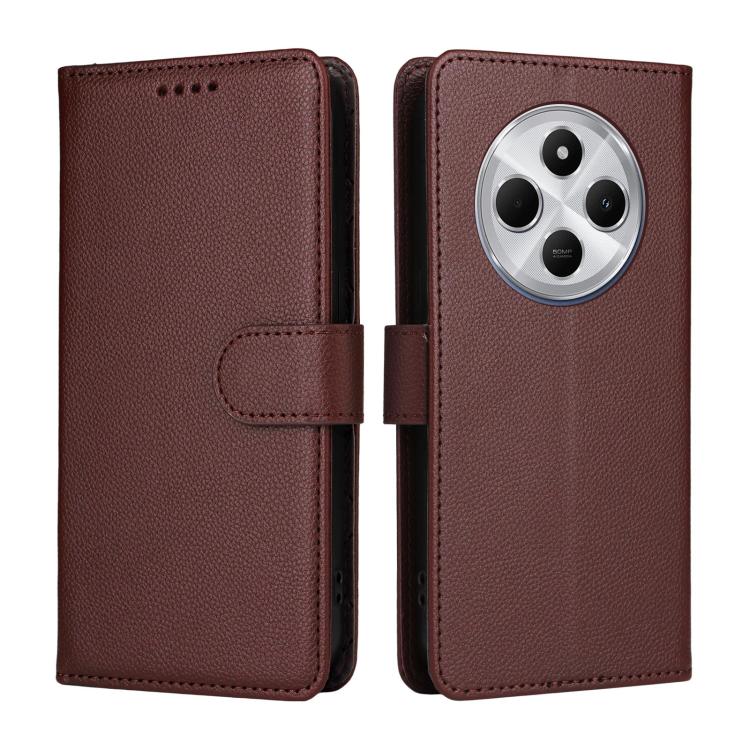 For Redmi 14C 4G / 5G / 14R / Poco M7 Litchi Texture RFID Blocking 3-Card Wallet Leather Phone Case(Brown)