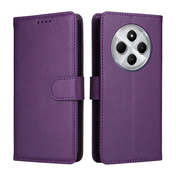 For Redmi 14C 4G / 5G / 14R / Poco M7 Litchi Texture RFID Blocking 3-Card Wallet Leather Phone Case(Purple)
