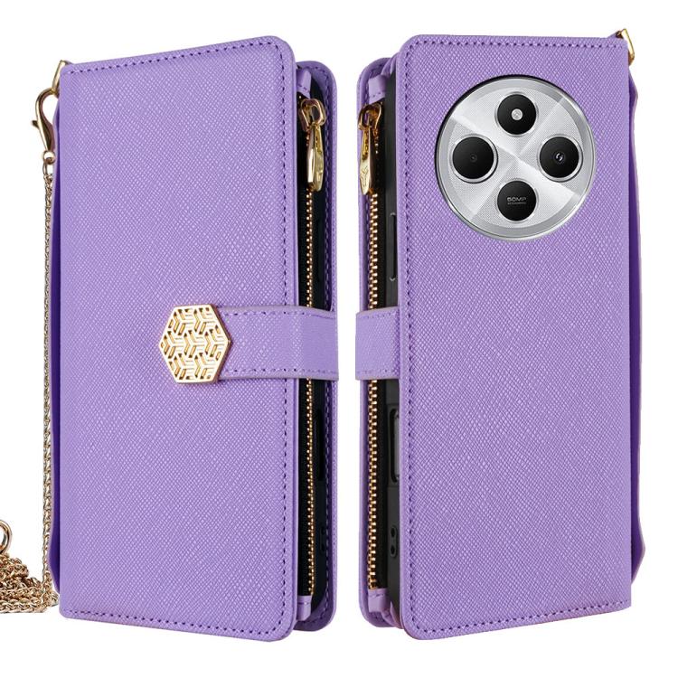 For Redmi 14C 4G Crossbody Handle Cross Texture Leather Phone Case(Purple)
