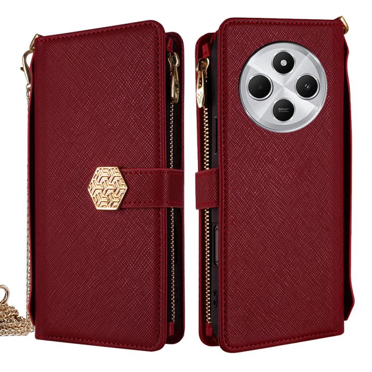 For Redmi 14C 4G Crossbody Handle Cross Texture Leather Phone Case(Red)