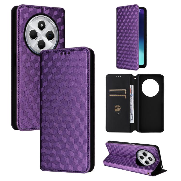 For Redmi 14C 4G Cubic Grid Texture Flip Leather Phone Case(Purple)