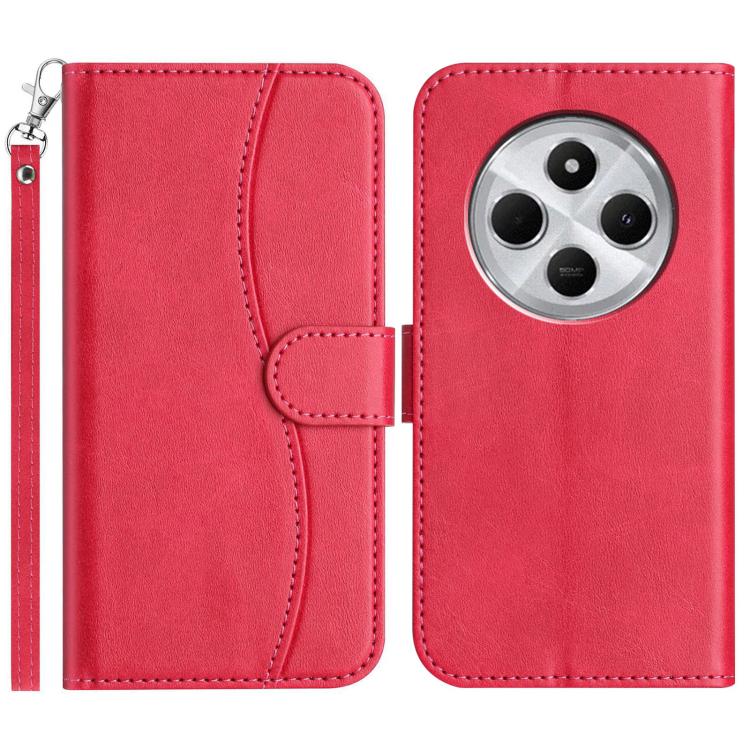 For Redmi 14C 4G Dual-Folded S-shape Leather Phone Case(Rose Red)