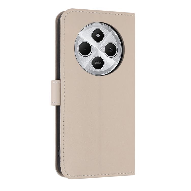 For Redmi 14C 4G / Poco C75 Metal Bow Leather Phone Case with Hand Strap(Apricot)