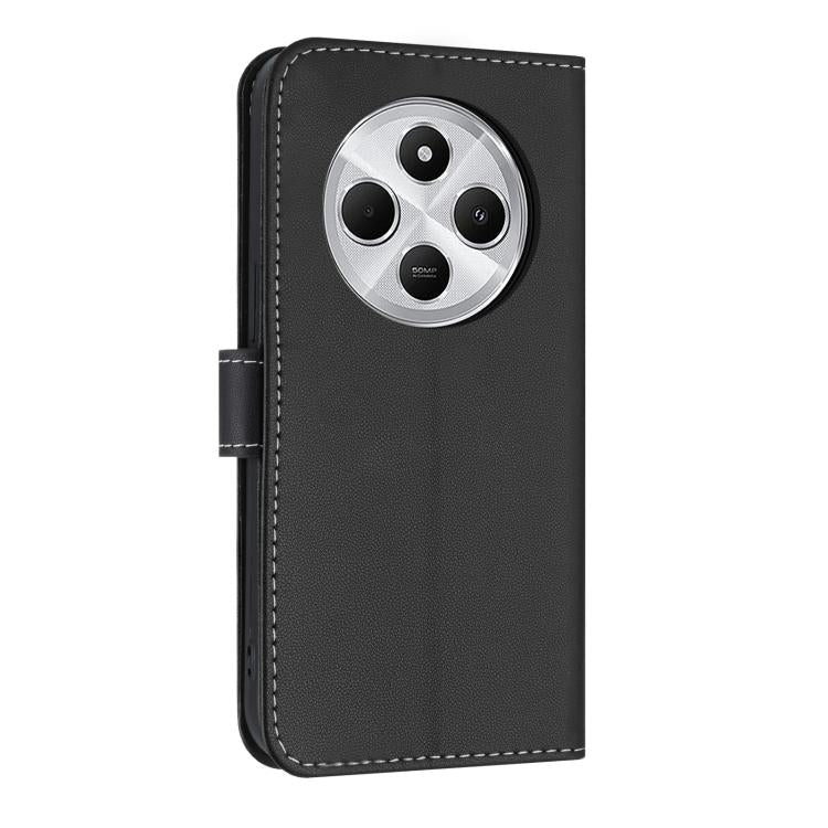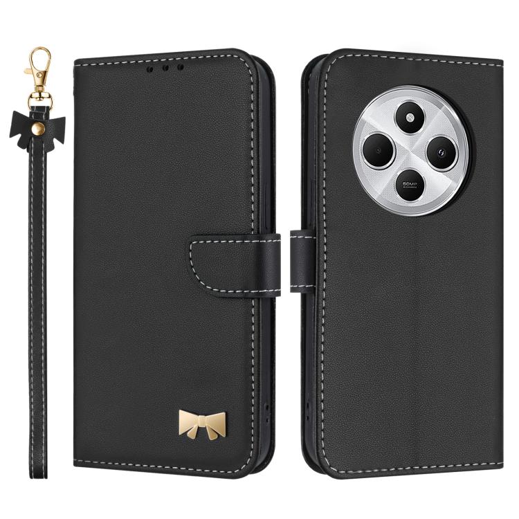 For Redmi 14C 4G / Poco C75 Metal Bow Leather Phone Case with Hand Strap(Black)