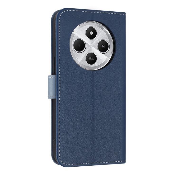 For Redmi 14C 4G / Poco C75 Metal Bow Leather Phone Case with Hand Strap(Dark Blue)