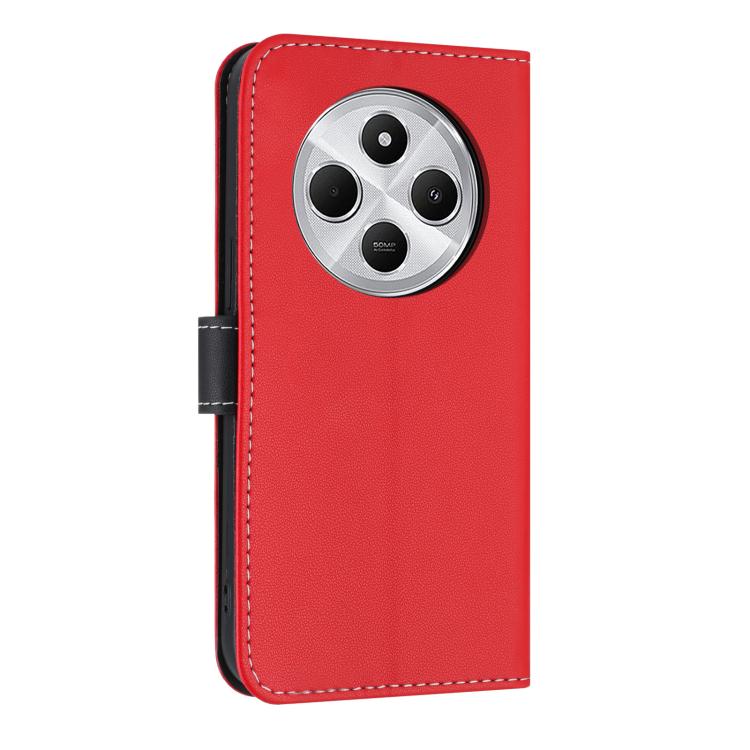 For Redmi 14C 4G / Poco C75 Metal Bow Leather Phone Case with Hand Strap(Red)