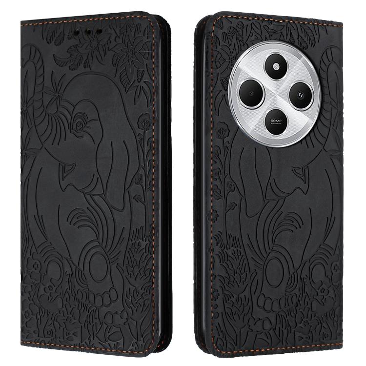 For Redmi 14C 4G Retro Elephant Embossed Leather Phone Case(Black)