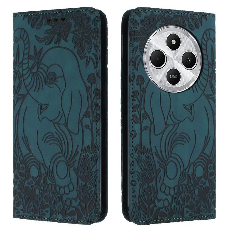 For Redmi 14C 4G Retro Elephant Embossed Leather Phone Case(Green)