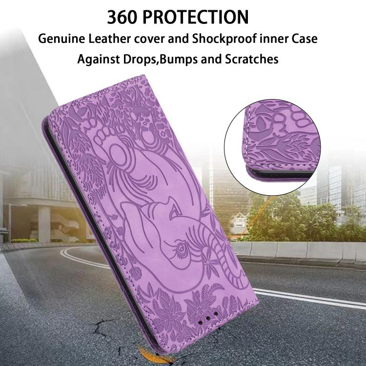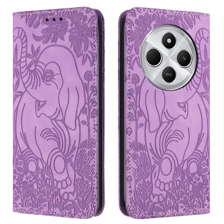 For Redmi 14C 4G Retro Elephant Embossed Leather Phone Case(Purple)