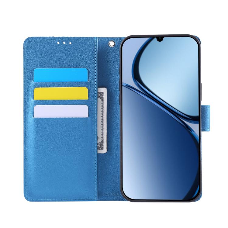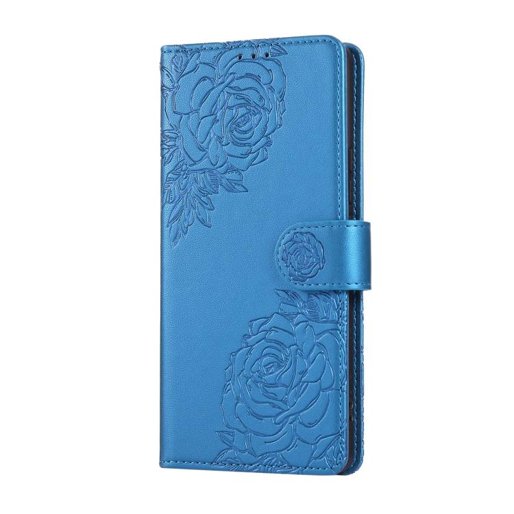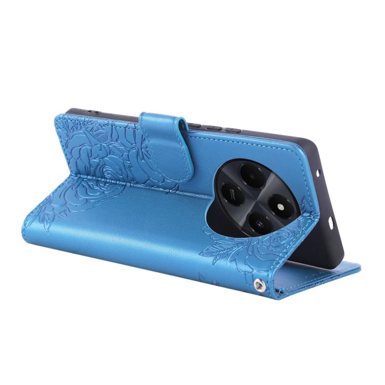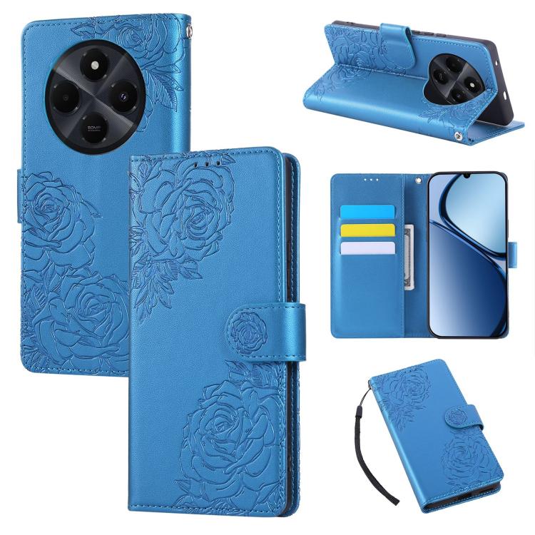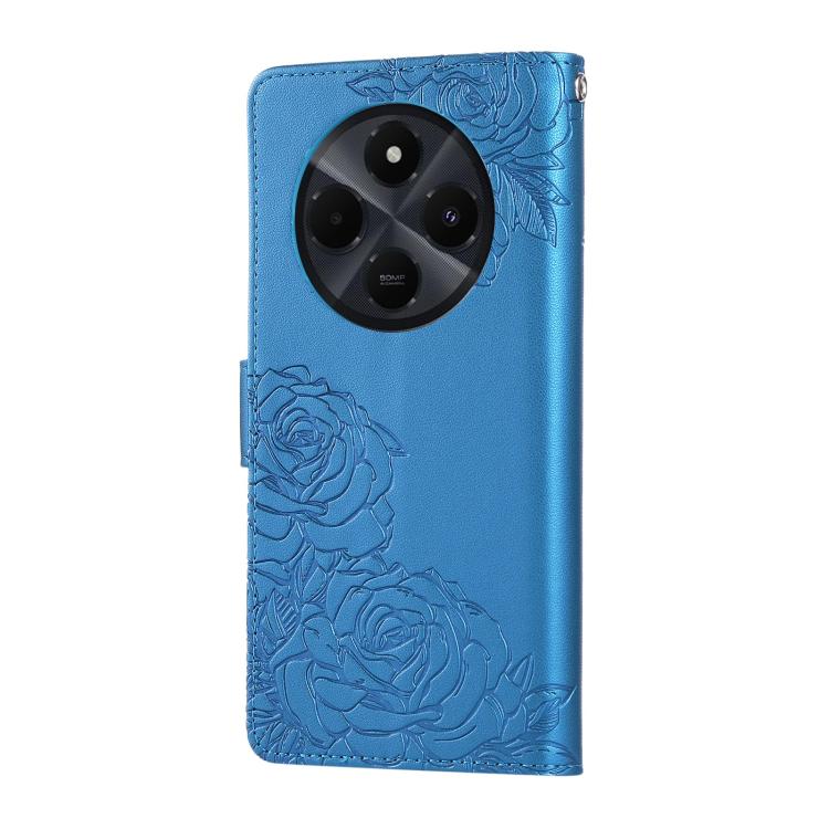 For Redmi 14C 4G Rose Flower Embossed 3-Card Slots Leather Phone Case(Blue)