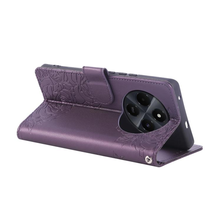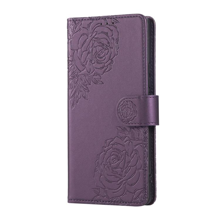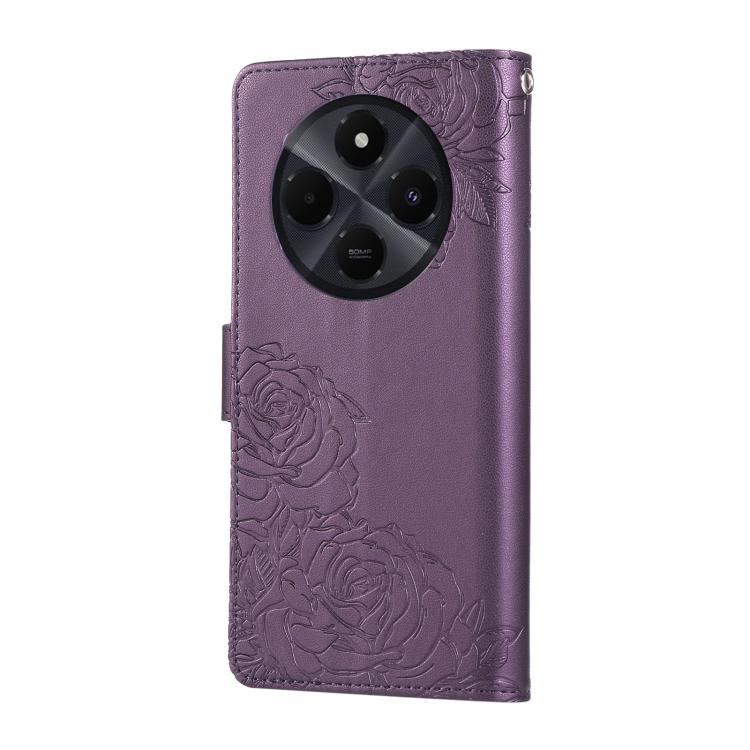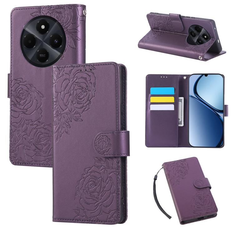 For Redmi 14C 4G Rose Flower Embossed 3-Card Slots Leather Phone Case(Deep Purple)