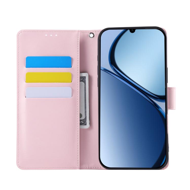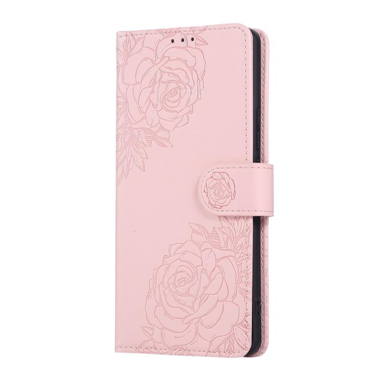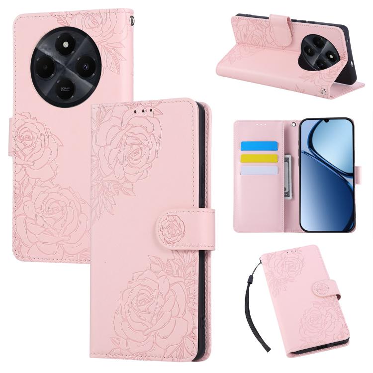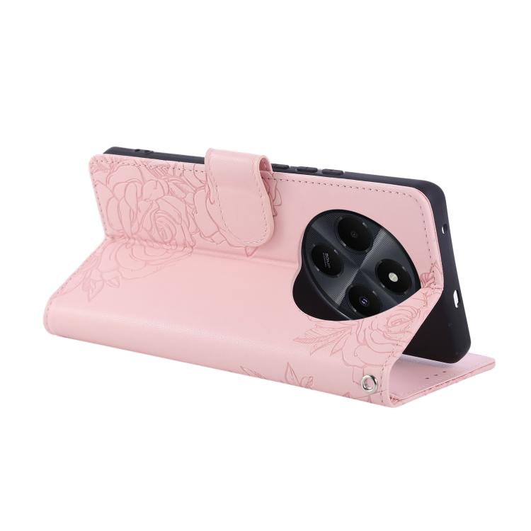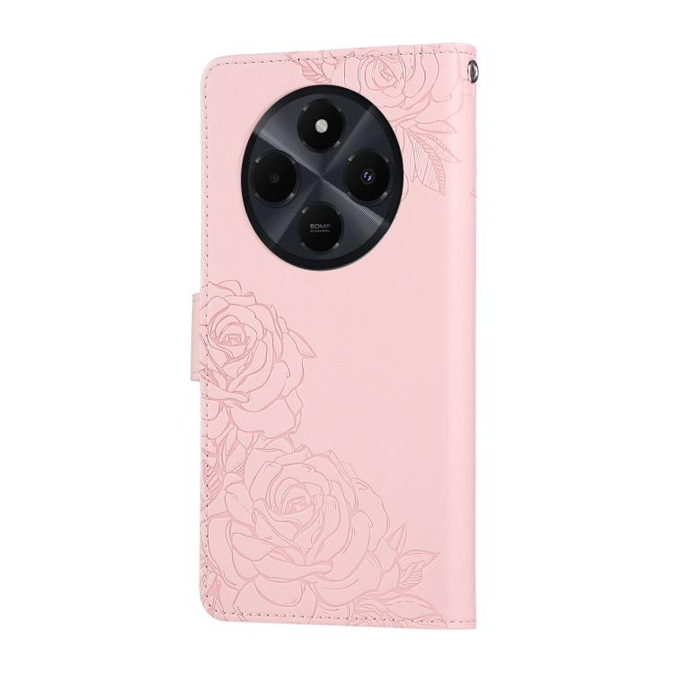 For Redmi 14C 4G Rose Flower Embossed 3-Card Slots Leather Phone Case(Pink)