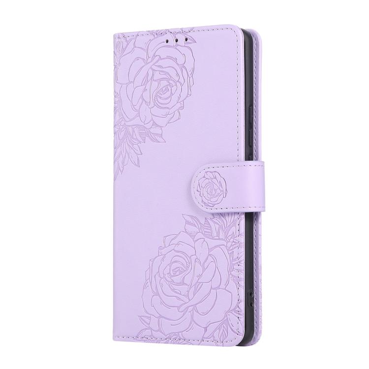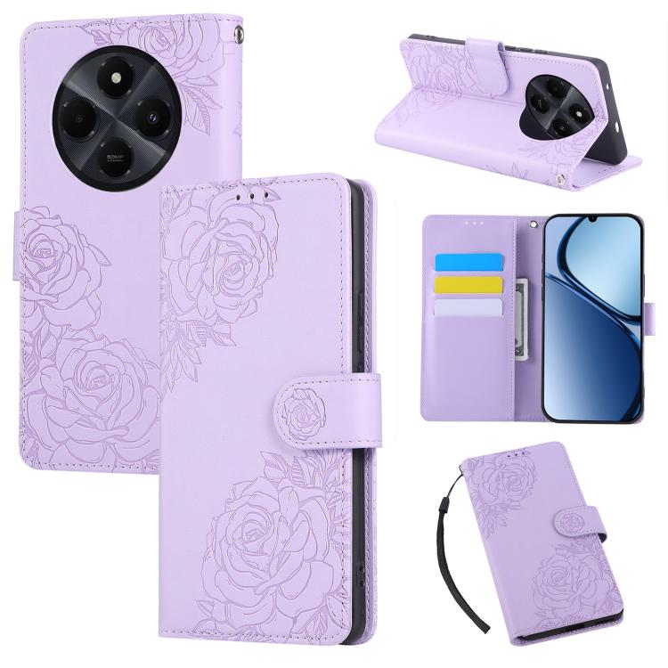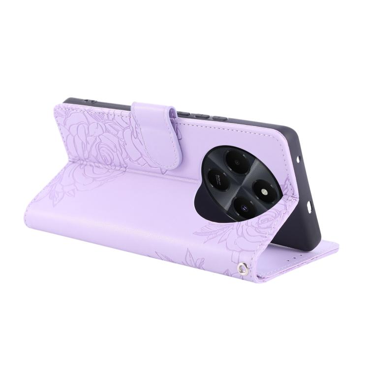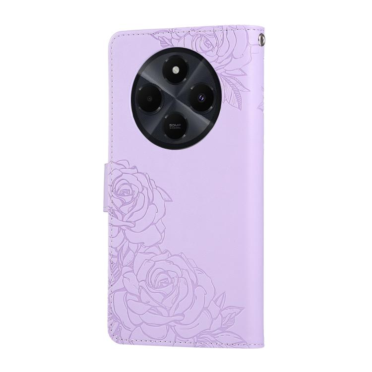 For Redmi 14C 4G Rose Flower Embossed 3-Card Slots Leather Phone Case(Purple)