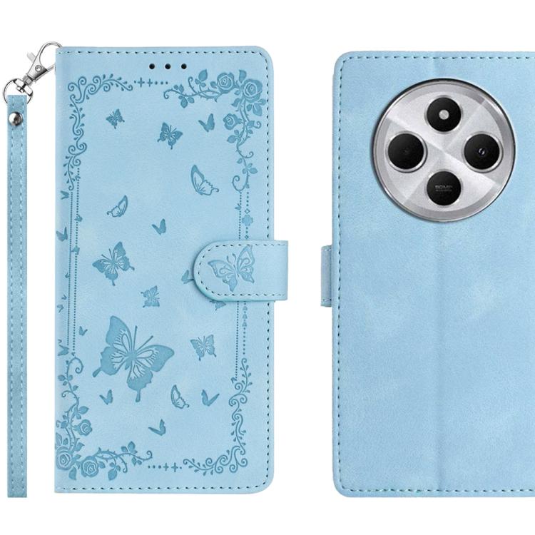 For Redmi 14C 4G Secret Garden Butterfly Pattern Leather Phone Case(Blue)
