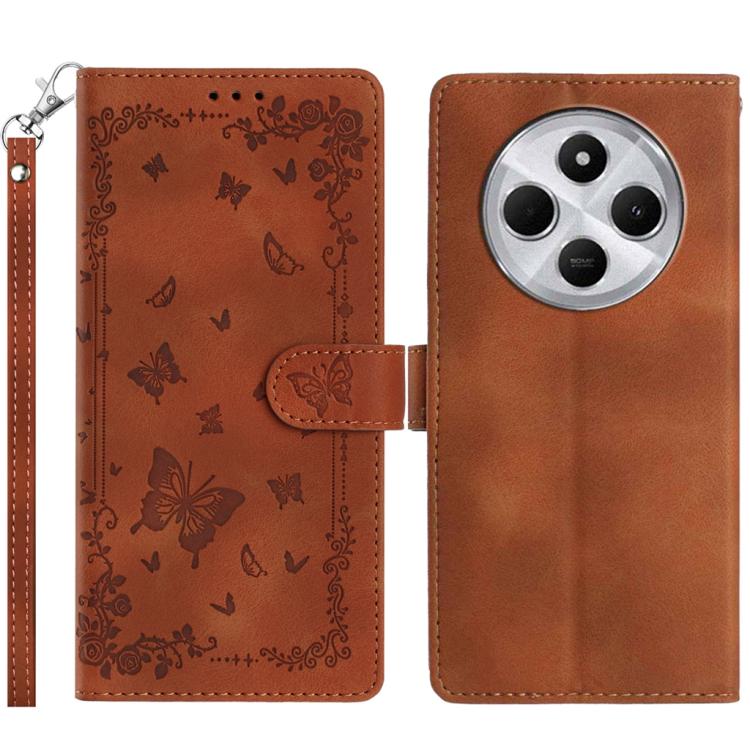 For Redmi 14C 4G Secret Garden Butterfly Pattern Leather Phone Case(Brown)