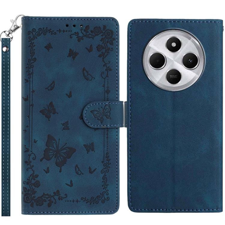 For Redmi 14C 4G Secret Garden Butterfly Pattern Leather Phone Case(Dark Blue)