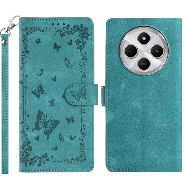 For Redmi 14C 4G Secret Garden Butterfly Pattern Leather Phone Case(Green)