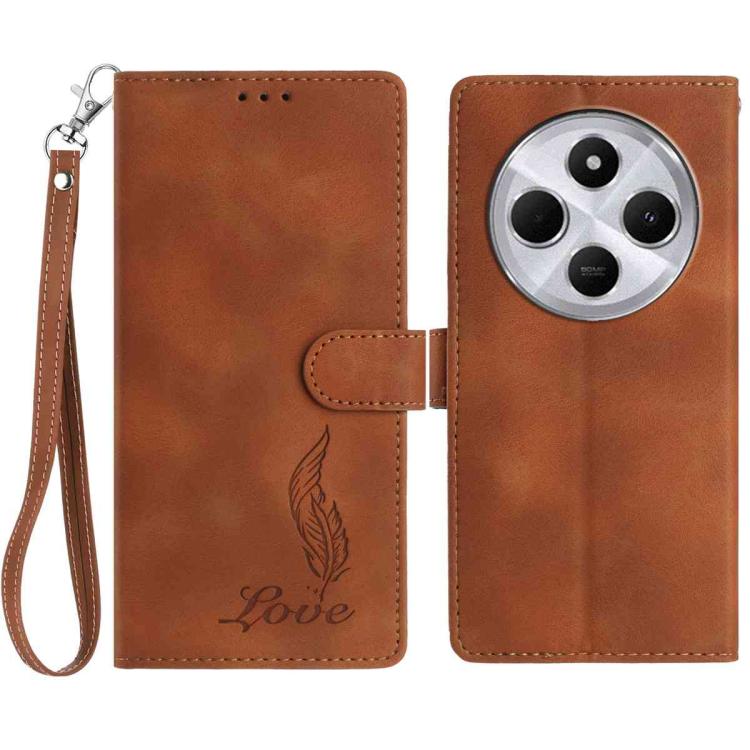 For Redmi 14C 4G Skin Feel Embossed Feather Leather Phone Case(Brown)