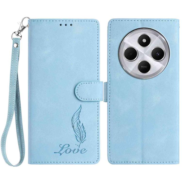 For Redmi 14C 4G Skin Feel Embossed Feather Leather Phone Case(Light Blue)
