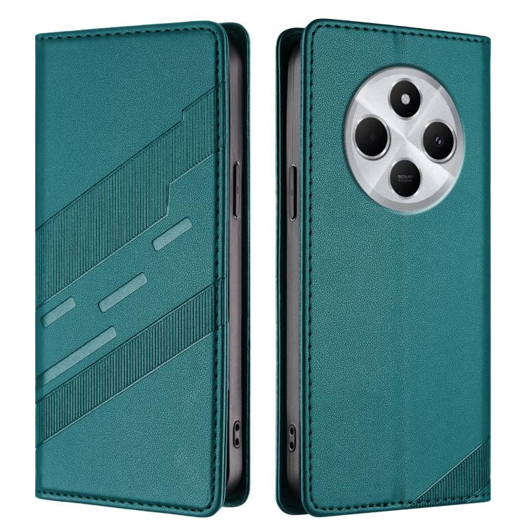 For Redmi 14C Embossed Multi-functional Wallet Retro Leather Phone Case(Dark Green)