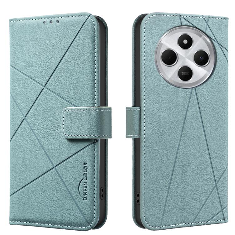 For Redmi 14C Geometric Pattern RFID Leather Phone Case(Green)
