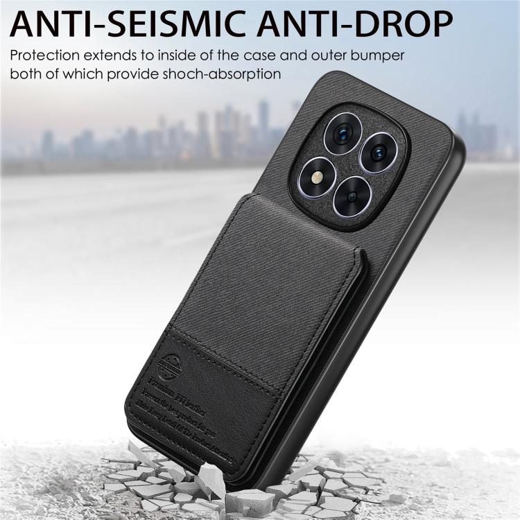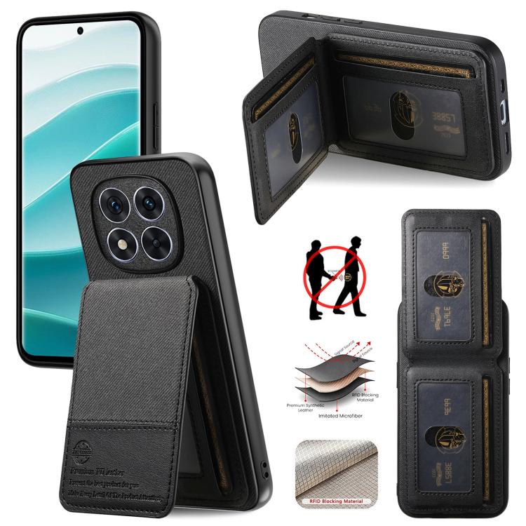 For Redmi 14C Twill Fabric Leather Vertical Flip RFID Card Bag Phone Case(Black)