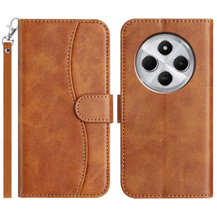 For Redmi 14R 5G Dual-Folded S-shape Leather Phone Case(Brown)