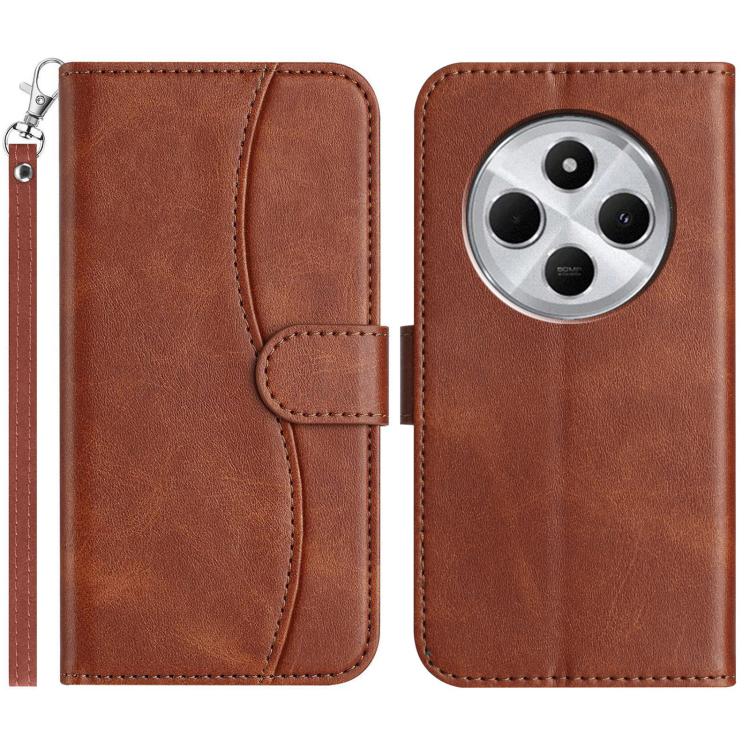 For Redmi 14R 5G Dual-Folded S-shape Leather Phone Case(Coffee)