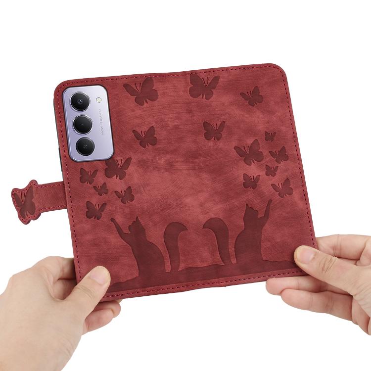 For Redmi 15 5G / 4G EU 171mm Butterfly Cat Embossing Flip Leather Phone Case(Red)