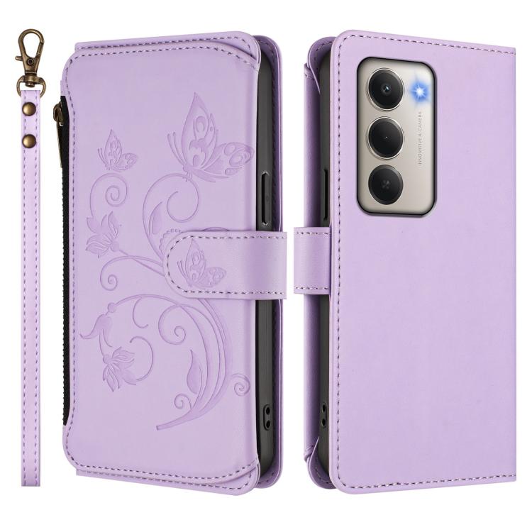 For Redmi 15 5G / 4G EU 171mm Butterfly Love Flower Multi-card Zipper Wallet Leather Phone Case(Light Purple)