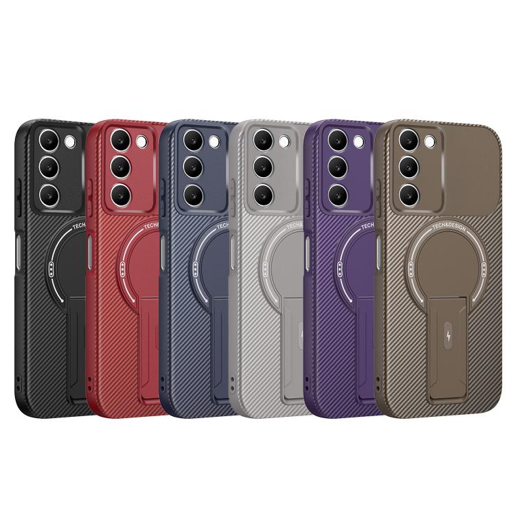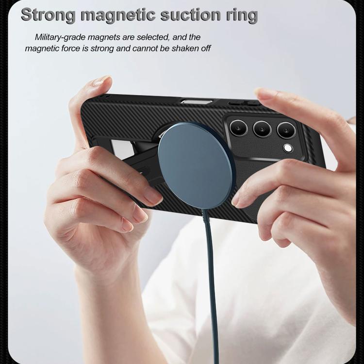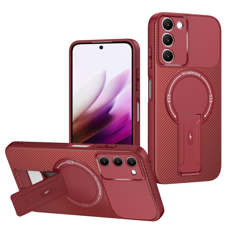 For Redmi 15 5G / 4G EU 171mm Carbon Fiber Texture MagSafe Phone Case with Holder(Red)