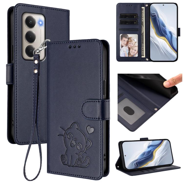 For Redmi 15 5G / 4G EU 171mm Embossed Heart Cat Leather Phone Case with Hand Strap(Blue)