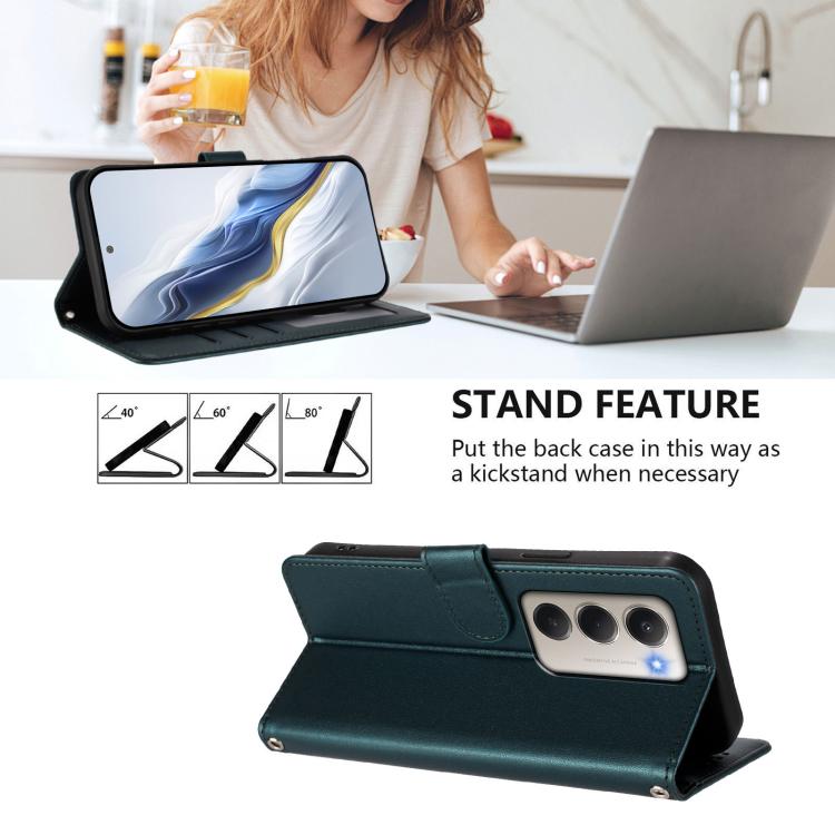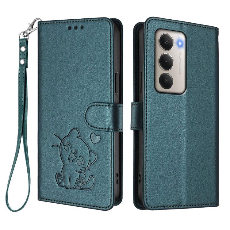 For Redmi 15 5G / 4G EU 171mm Embossed Heart Cat Leather Phone Case with Hand Strap(Dark Green)