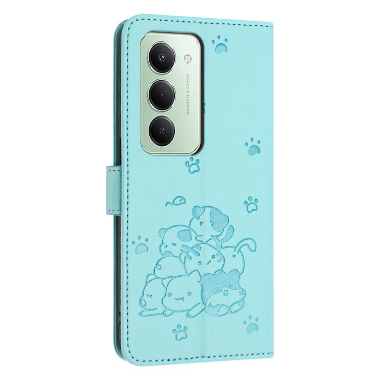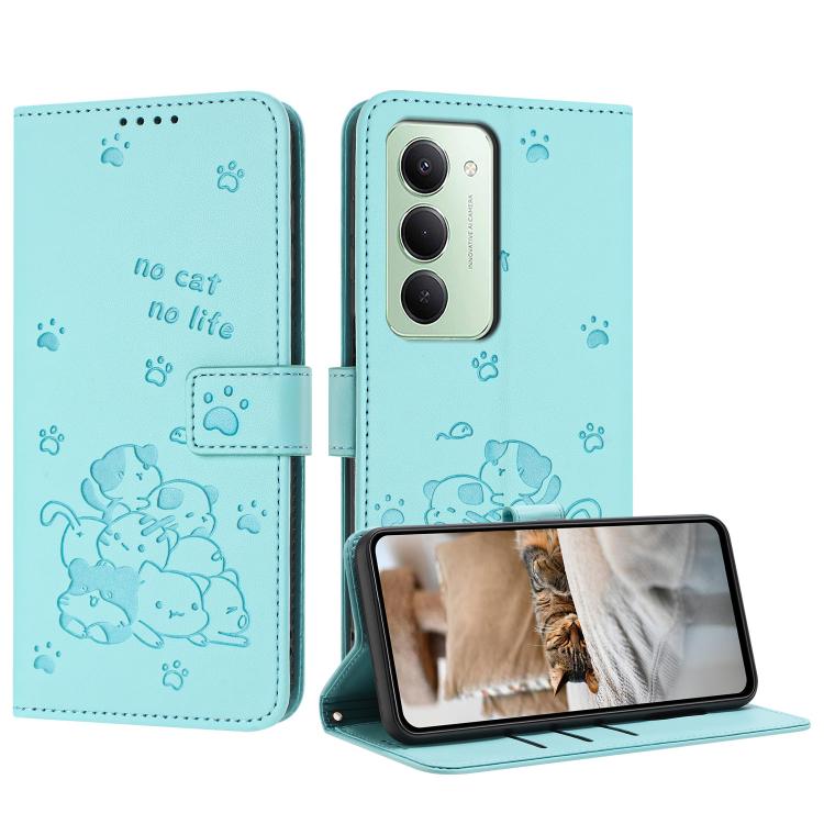 For Redmi 15 5G / 4G EU 171mm Embossed Kitten Phone Leather Case with Lanyard(Mint Green)