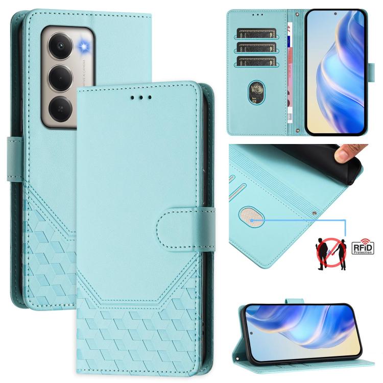 For Redmi 15 5G / 4G EU 171mm Honeycomb Embossing RFID Leather Phone Case(Mint Green)