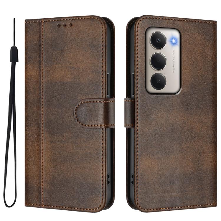 For Redmi 15 5G / 4G EU 171mm Line Splicing Buckle Retro Leather Phone Case(Brown)