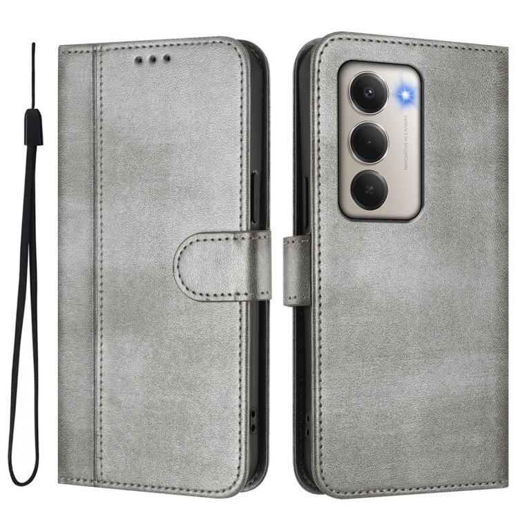 For Redmi 15 5G / 4G EU 171mm Line Splicing Buckle Retro Leather Phone Case(Grey)