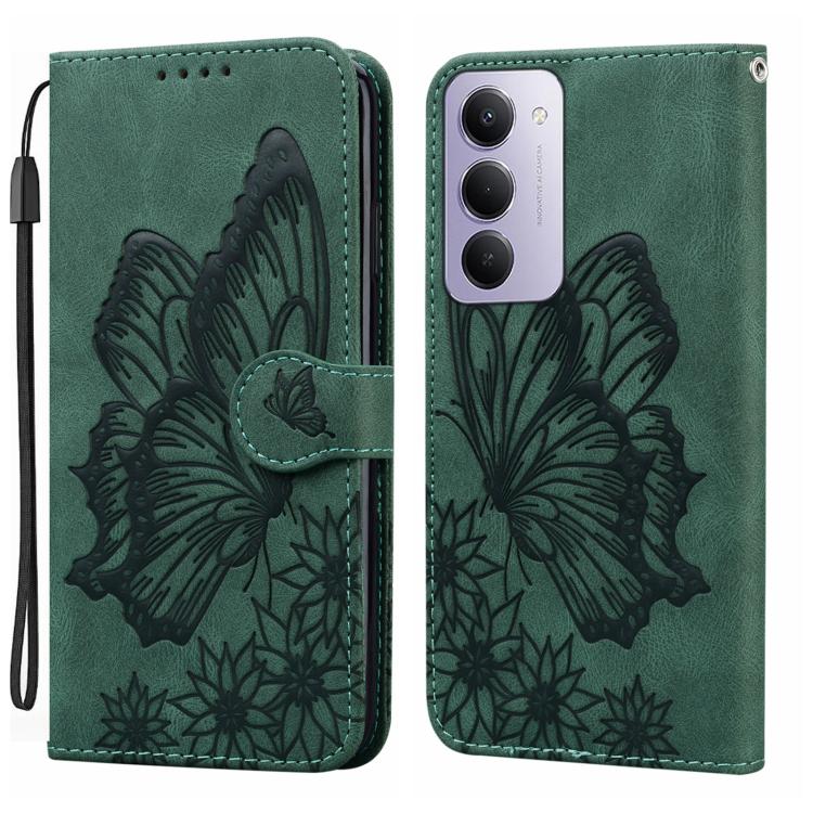 For Redmi 15 5G / 4G EU 171mm Retro Skin Feel Butterflies Embossing Horizontal Flip Leather Phone Case(Green)