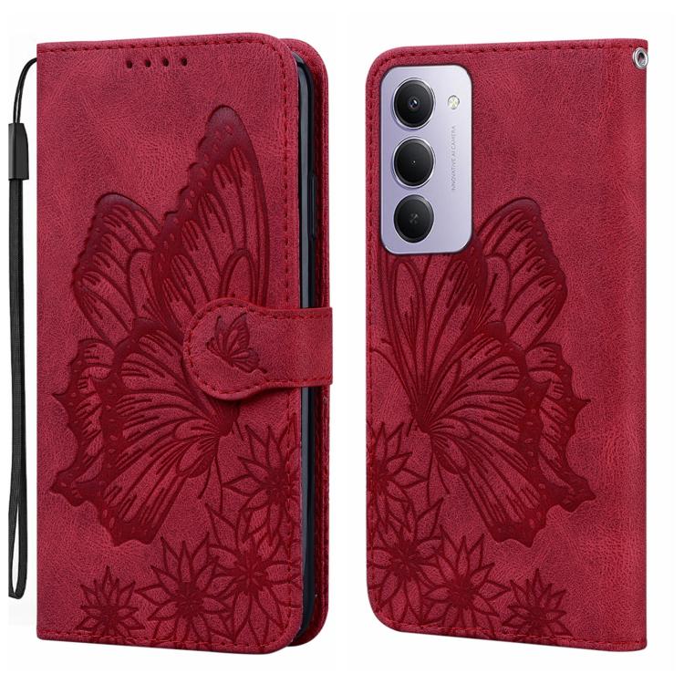 For Redmi 15 5G / 4G EU 171mm Retro Skin Feel Butterflies Embossing Horizontal Flip Leather Phone Case(Red)
