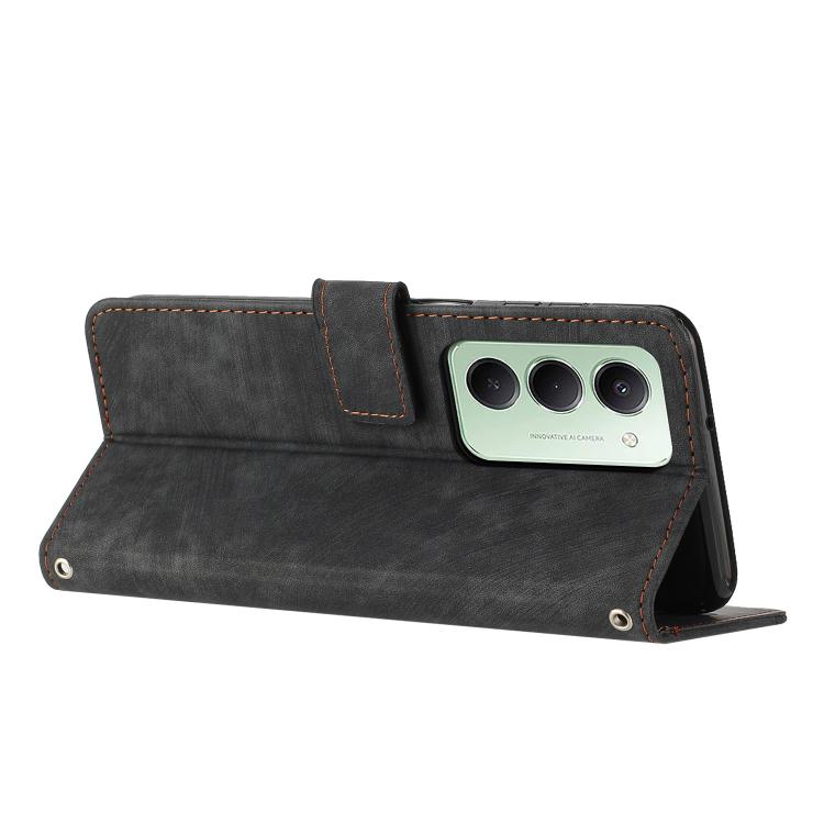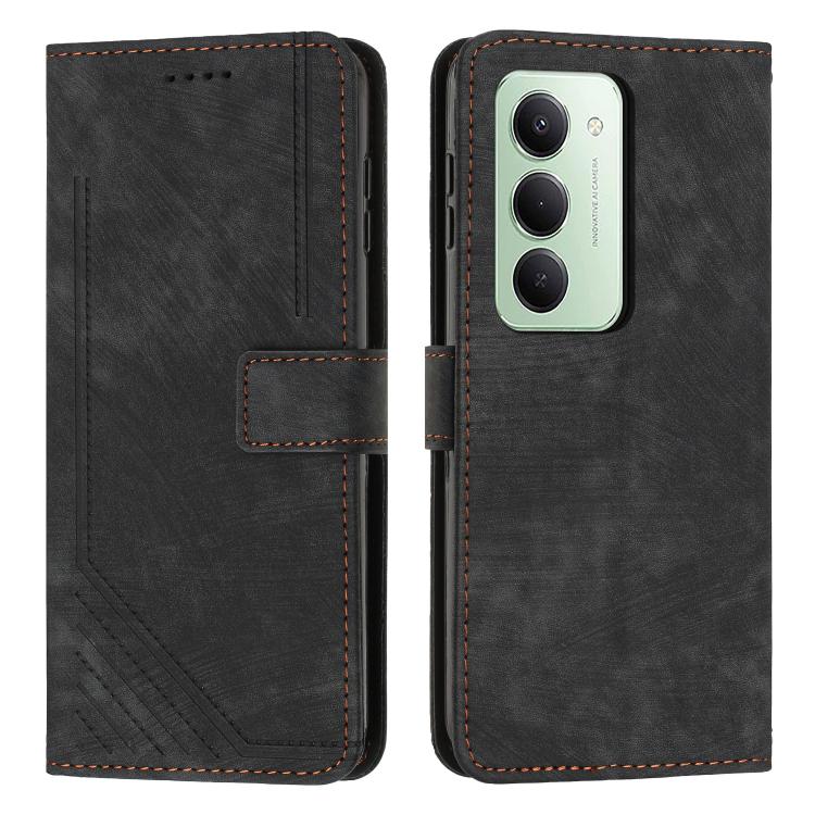 For Redmi 15 5G / 4G EU 171mm Skin Feel Stripe Pattern Leather Phone Case with Lanyard(Black)