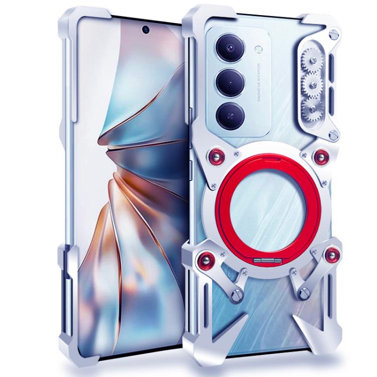 For Redmi 15 5G Global 169mm Rotating Bracket Hollow Metal Phone Case with Lanyard(Silver)