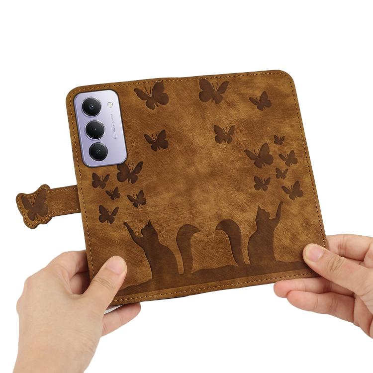 For Redmi 15 5G Global / 4G SEA 169.5mm Butterfly Cat Embossing Flip Leather Phone Case(Brown)