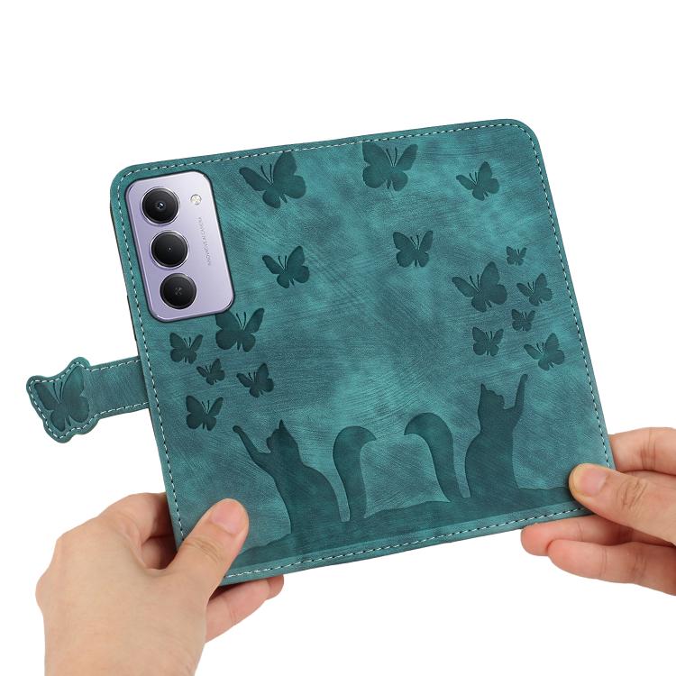 For Redmi 15 5G Global / 4G SEA 169.5mm Butterfly Cat Embossing Flip Leather Phone Case(Wathet)