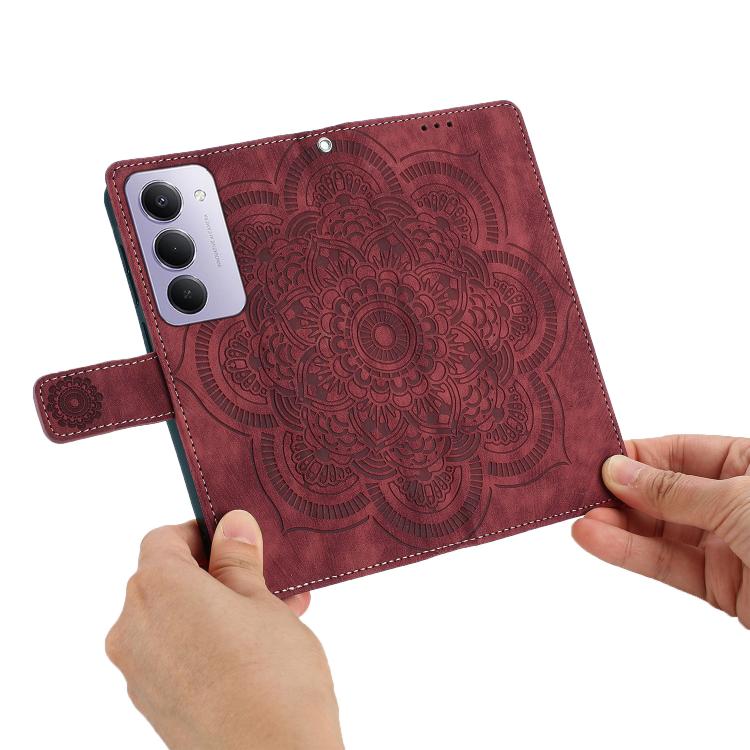 For Redmi 15 5G Global / 4G SEA 169.5mm Mandala Embossed Retro Frosted Leather Phone Case(Red)