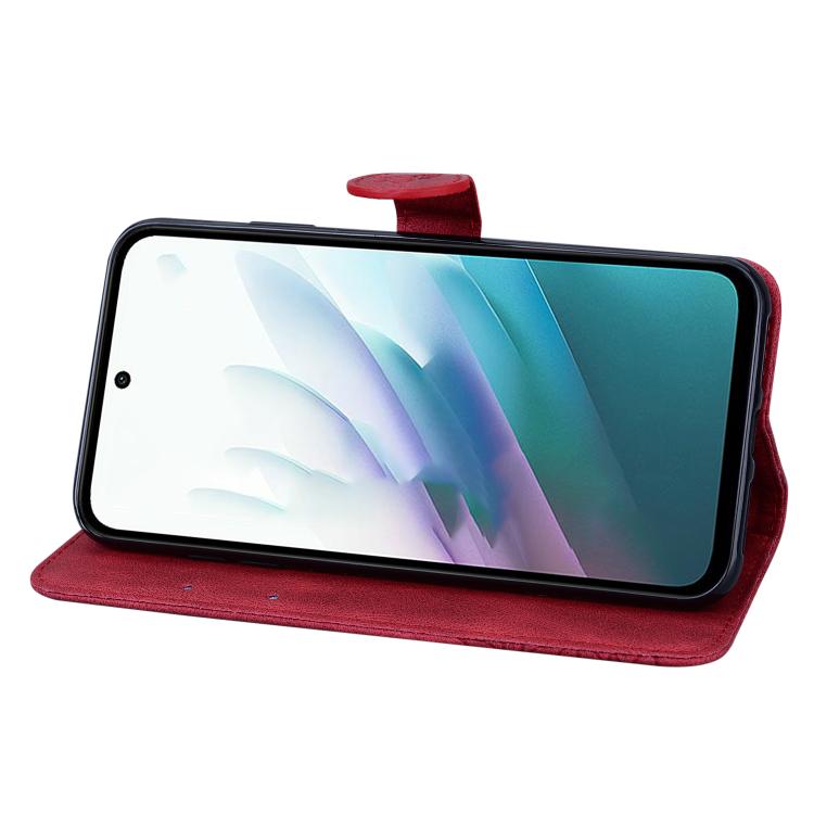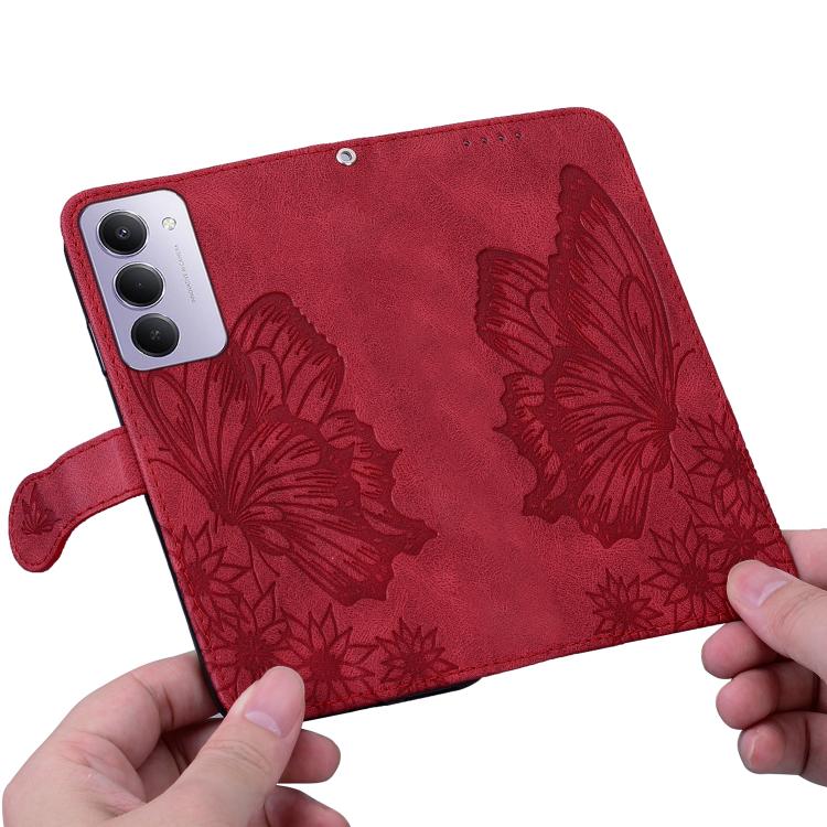 For Redmi 15 5G Global / 4G SEA 169.5mm Retro Skin Feel Butterflies Embossing Horizontal Flip Leather Phone Case(Red)