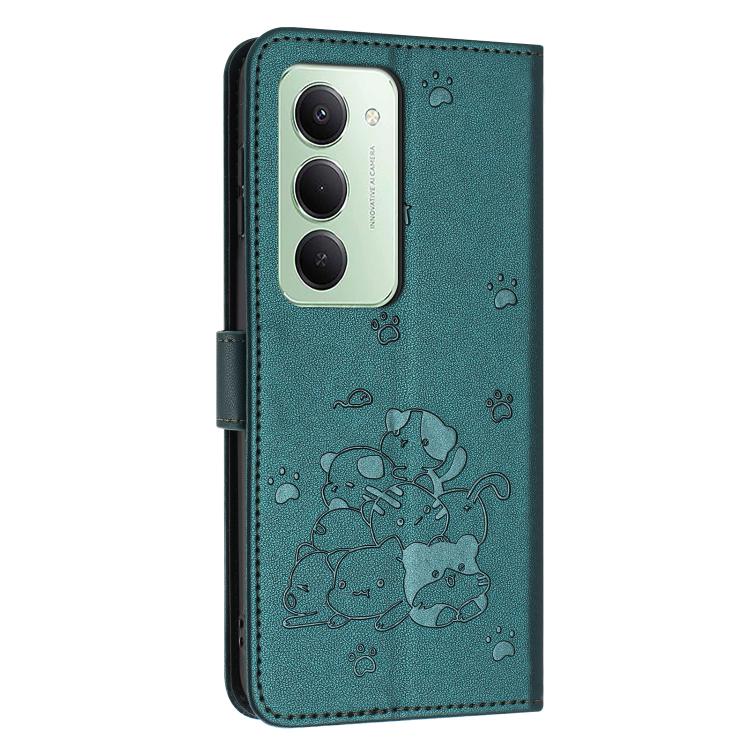 For Redmi 15 5G Global / 4G SEA 169mm Embossed Kitten Phone Leather Case with Lanyard(Dark Green)