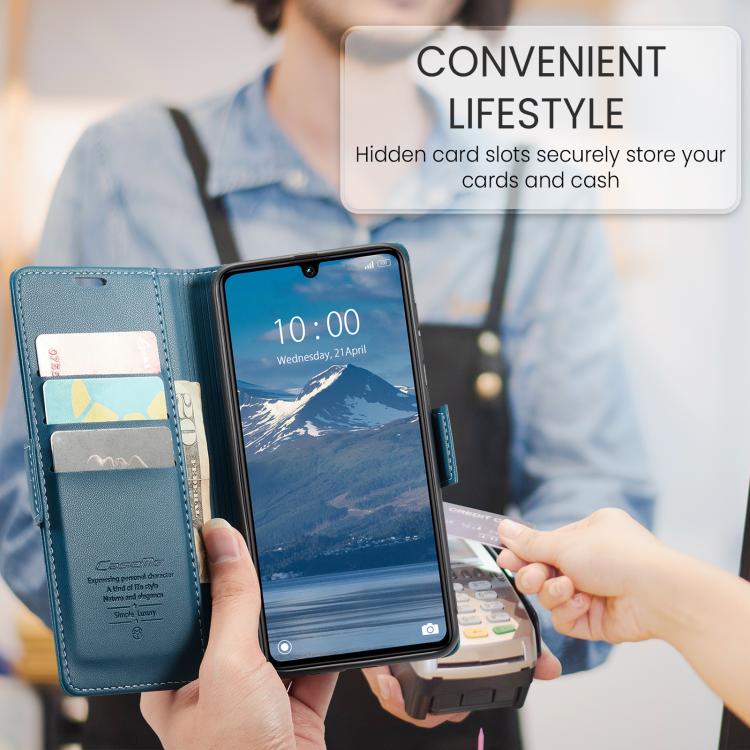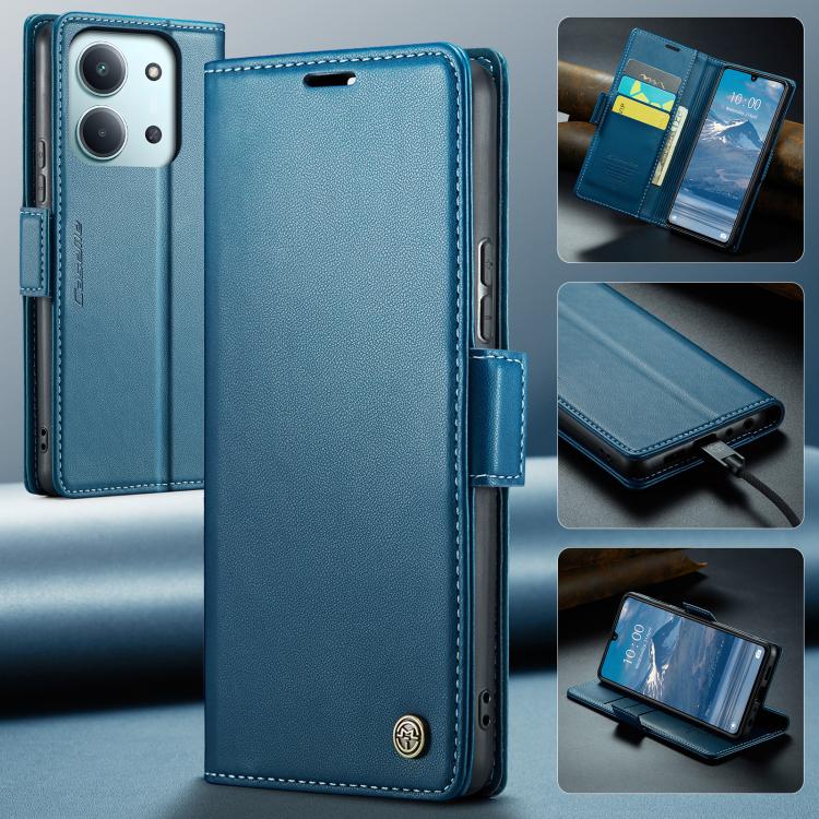 For Redmi 15C 5G / 4G EU 173mm CaseMe 023 Butterfly Buckle Litchi Texture RFID Anti-theft Leather Phone Case(Blue)