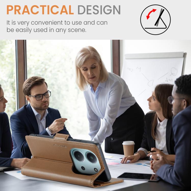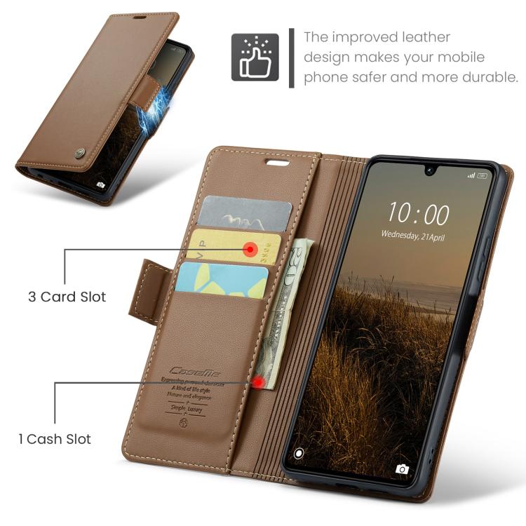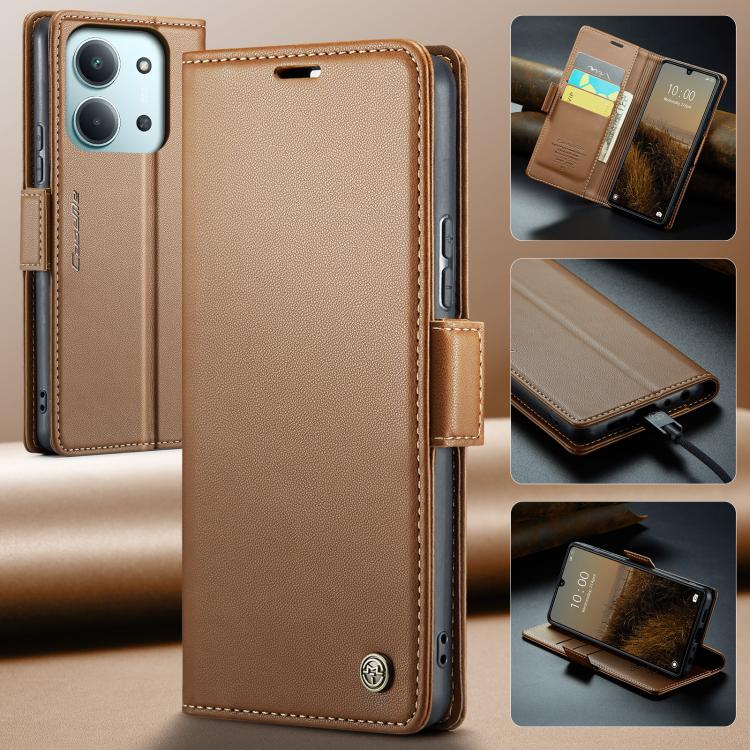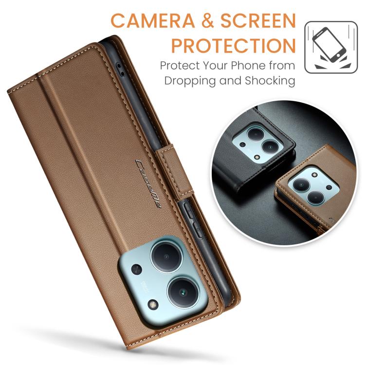 For Redmi 15C 5G / 4G EU 173mm CaseMe 023 Butterfly Buckle Litchi Texture RFID Anti-theft Leather Phone Case(Brown)