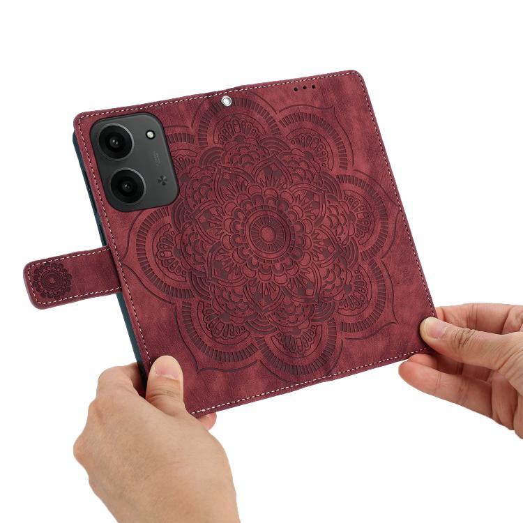 For Redmi 15C 5G / 4G EU 173mm Mandala Embossed Retro Frosted Leather Phone Case(Red)