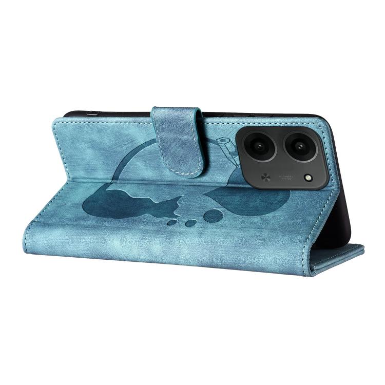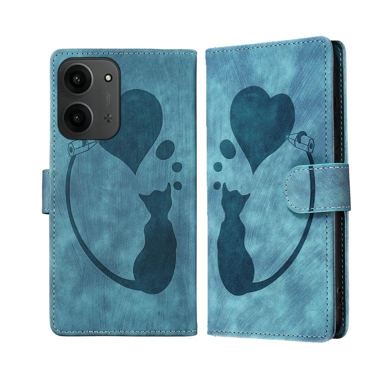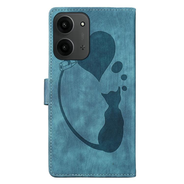 For Redmi 15C 5G / 4G EU 173mm Pen Heart Cat Embossed Leather Phone Case(Blue)